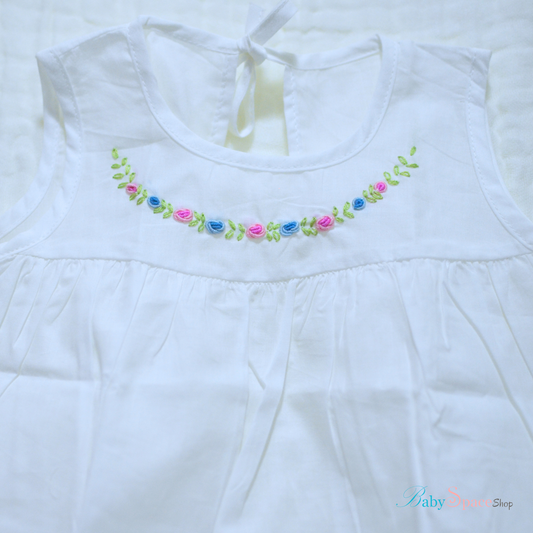 Handmade Muslin Printed Baby Dress - 3 to 6 months (Pink)