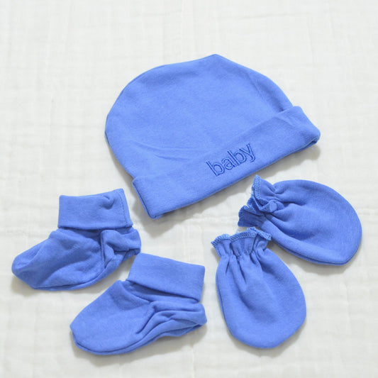 Baby Hat, Socks, Mittens - Newborn Cotton Blue
