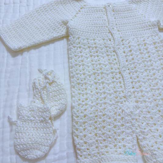 Crochet Suit, Hat Mittens and Socks - 0 to 3 Month (Tied at back)