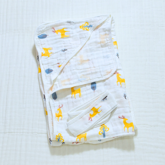 Muslin Hooded Baby Blanket - 90x90cm