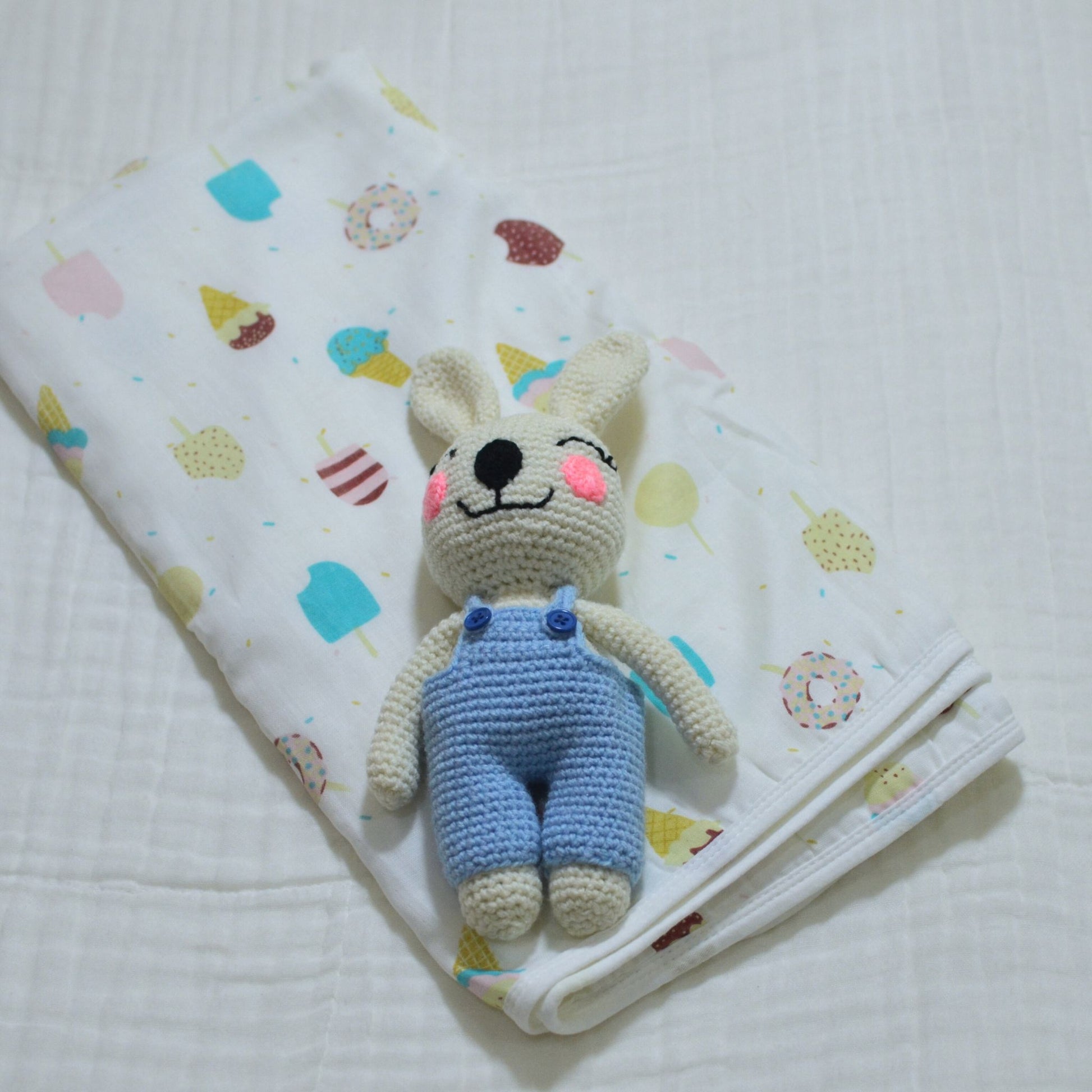 A bundled gift offer with baby towel and crochet toy.