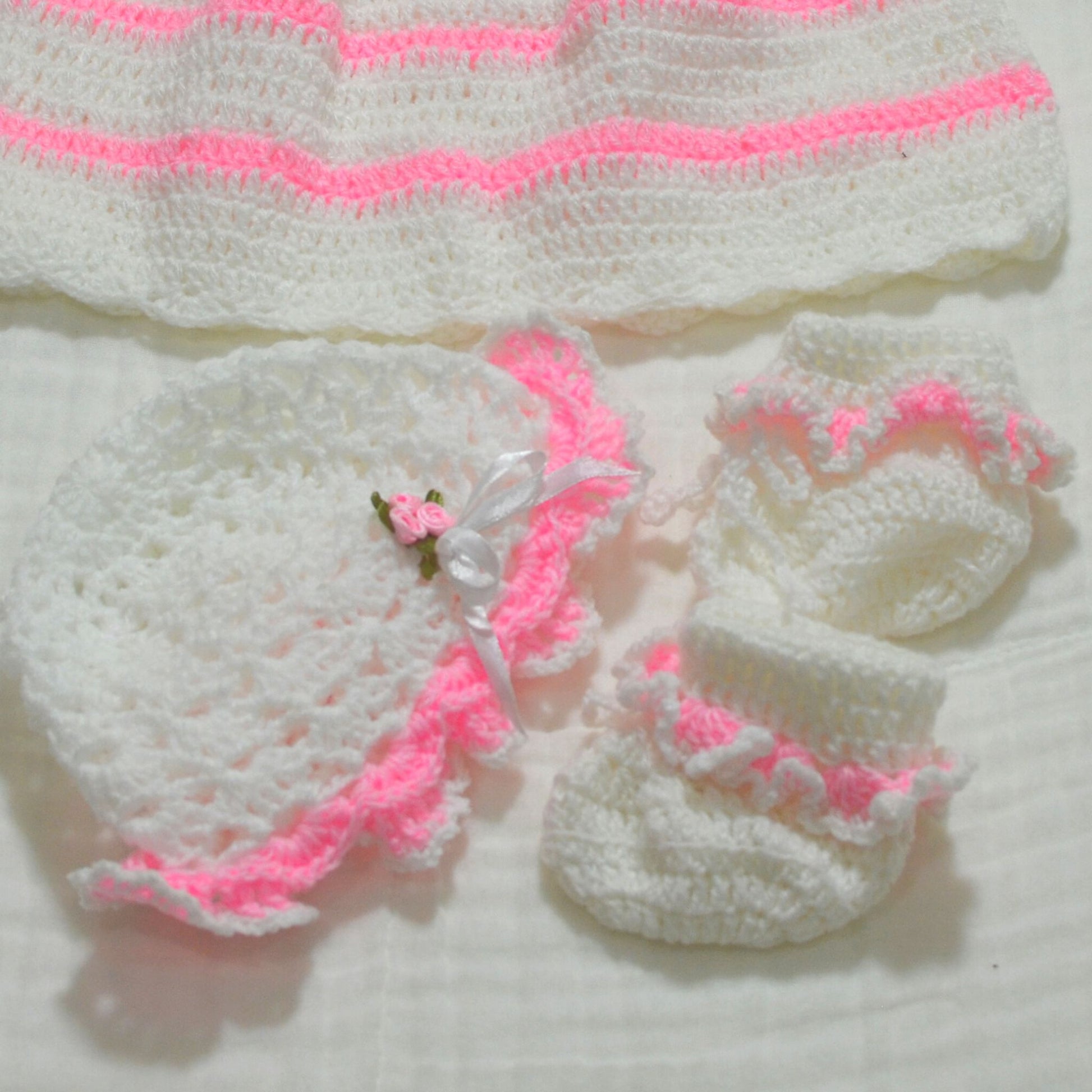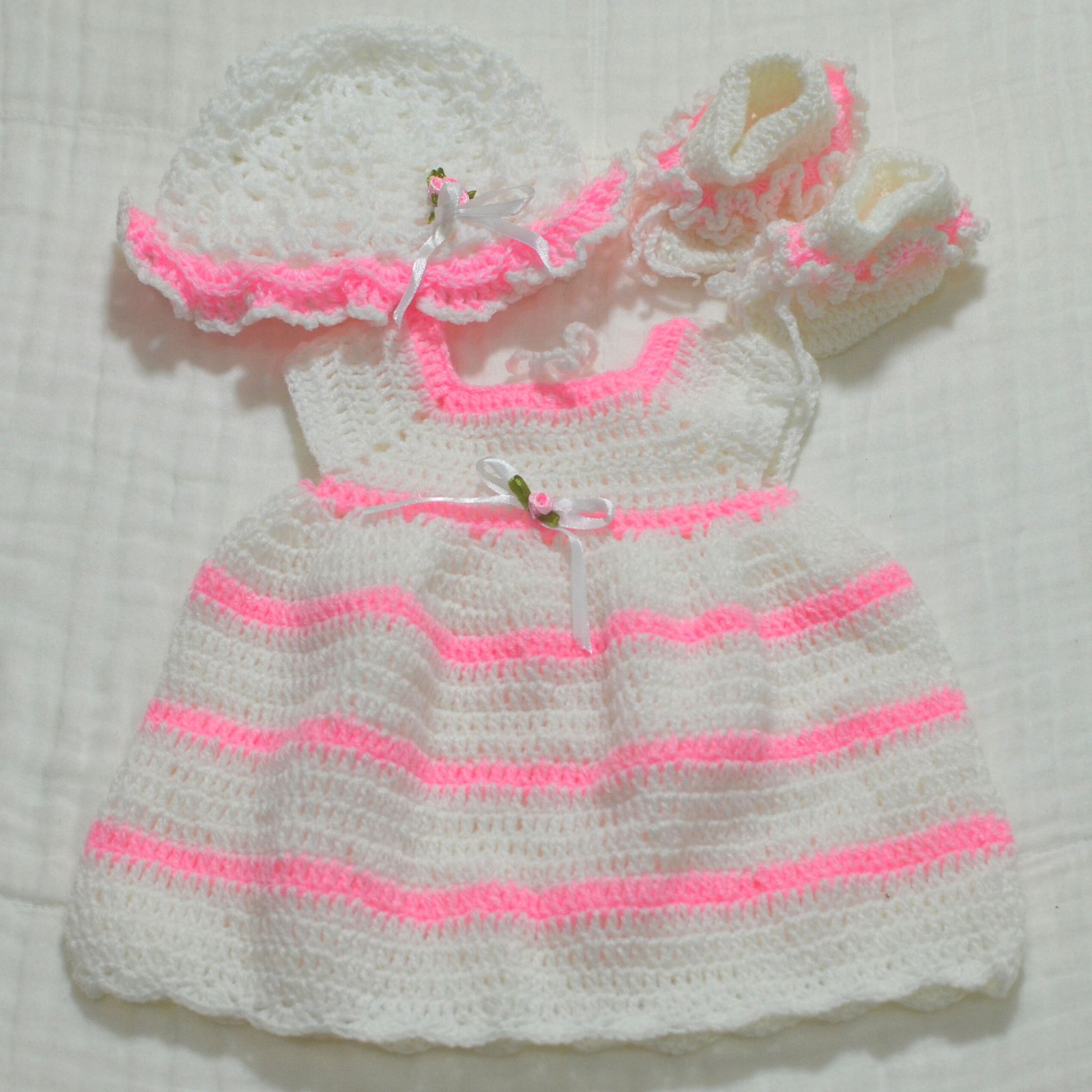Crochet Baby Dress with Hat & Socks - 0 to 3 month