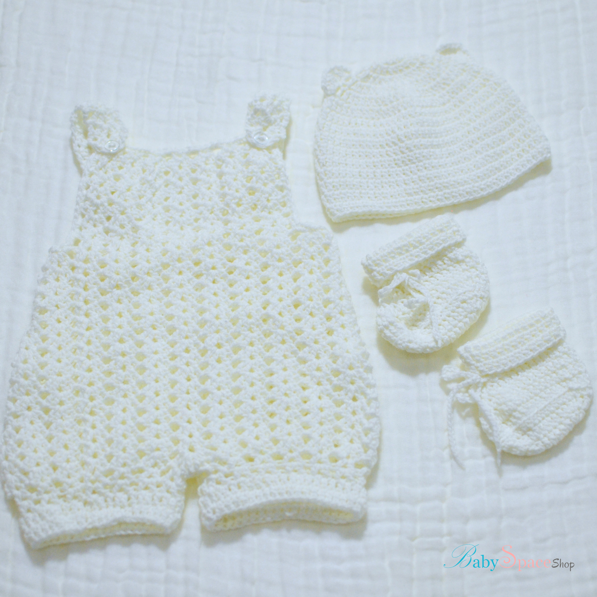 Crochet Baby Dungaree and Hat Socks - Newborn size