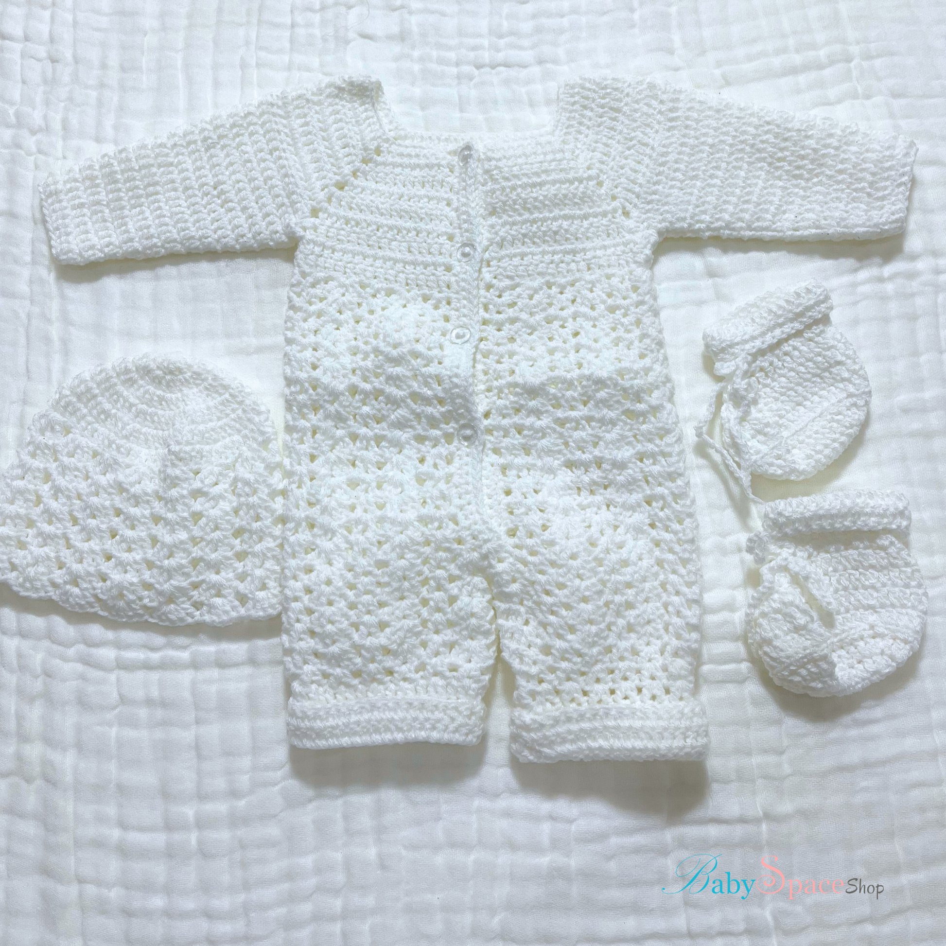 Crochet Baby Ful Body Suit With Hat and Socks - Newborn Size