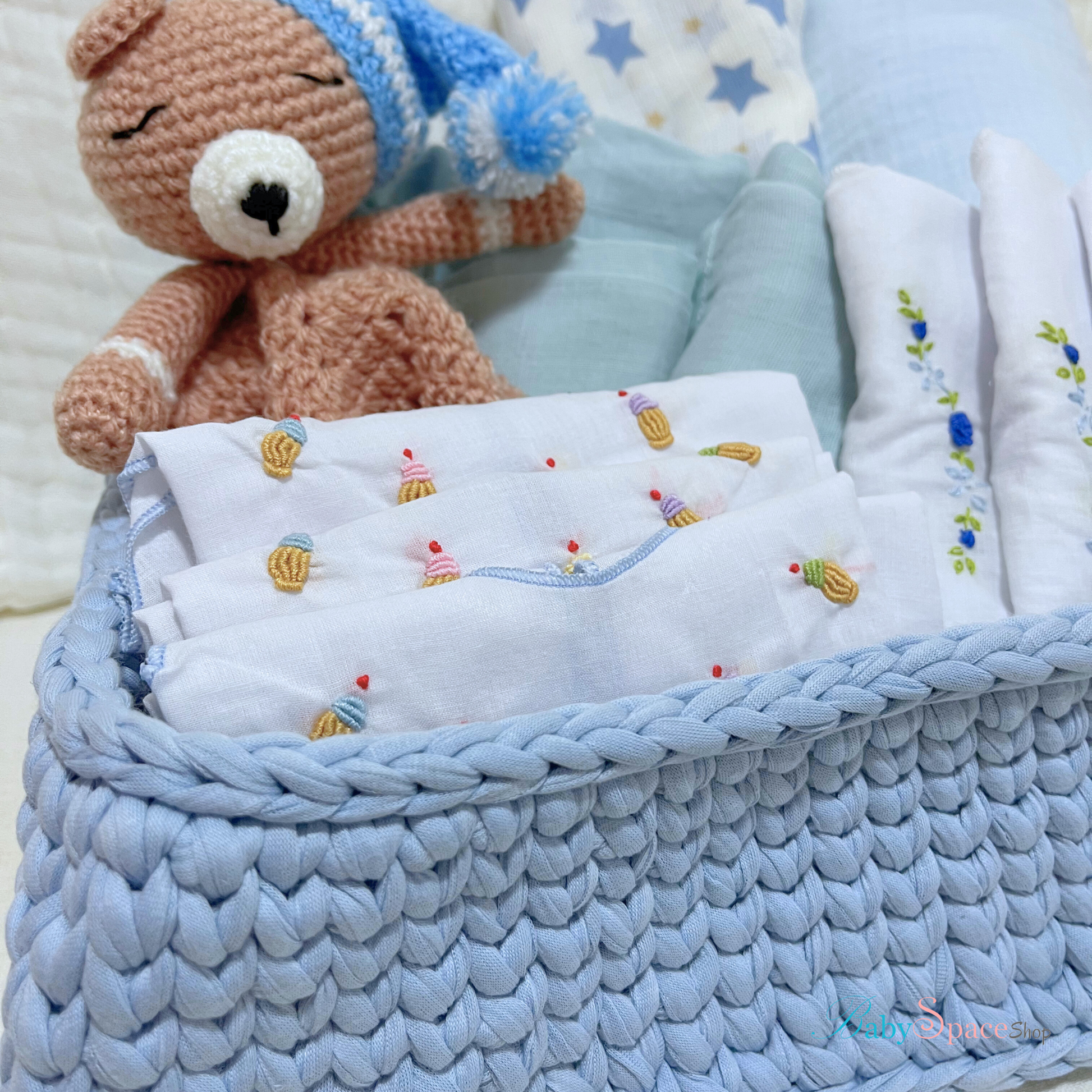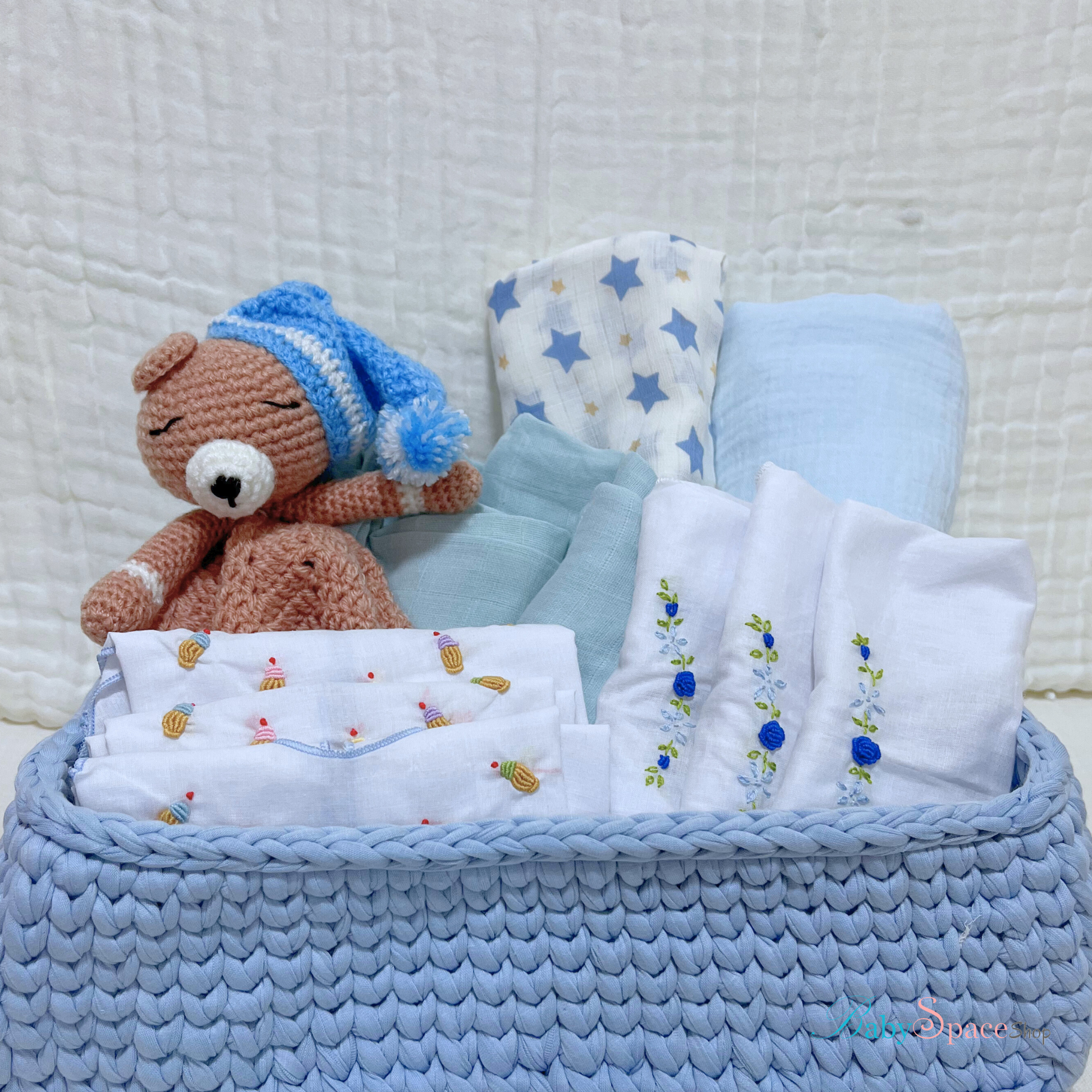 Crochet Basket Baby Hamper Gift - Blue II