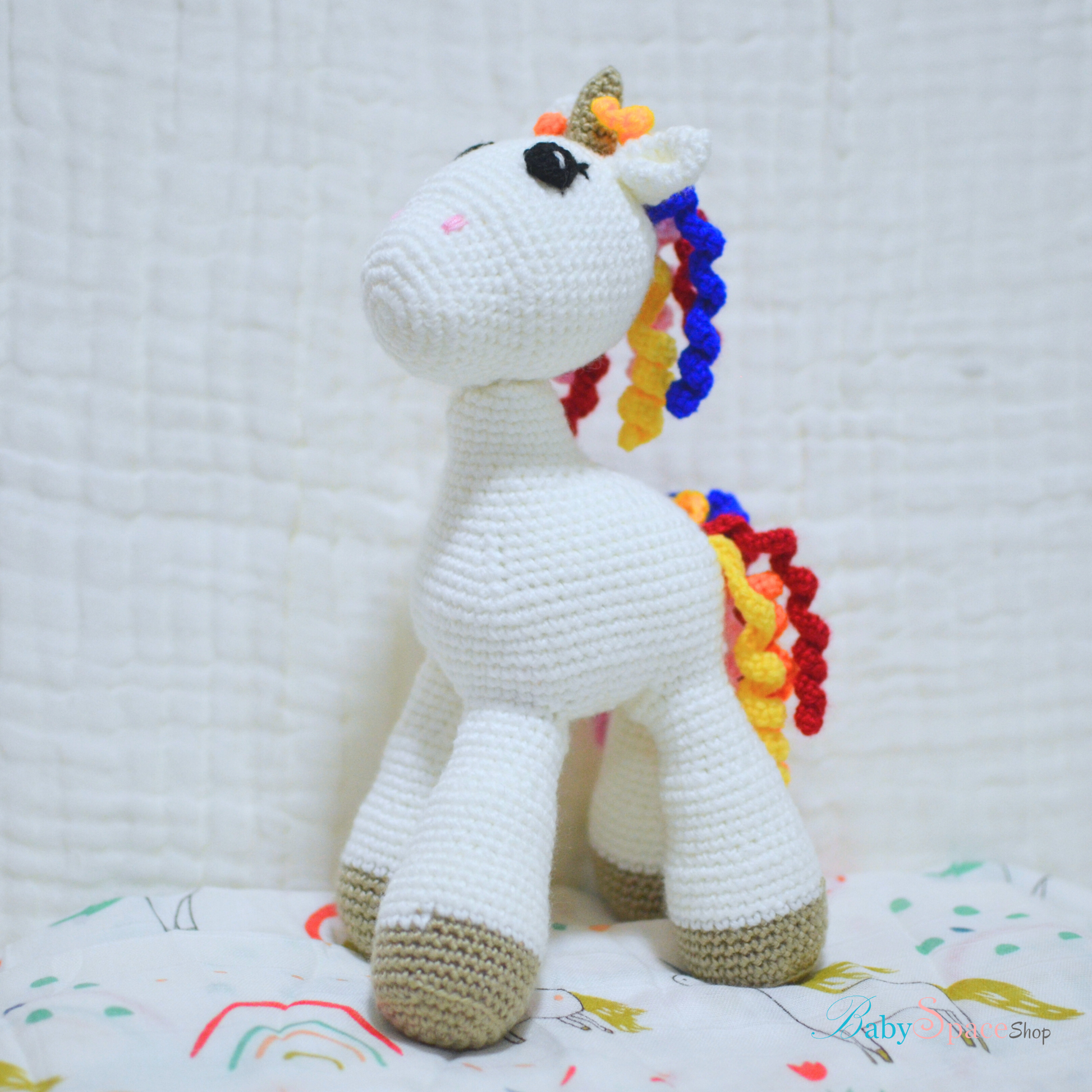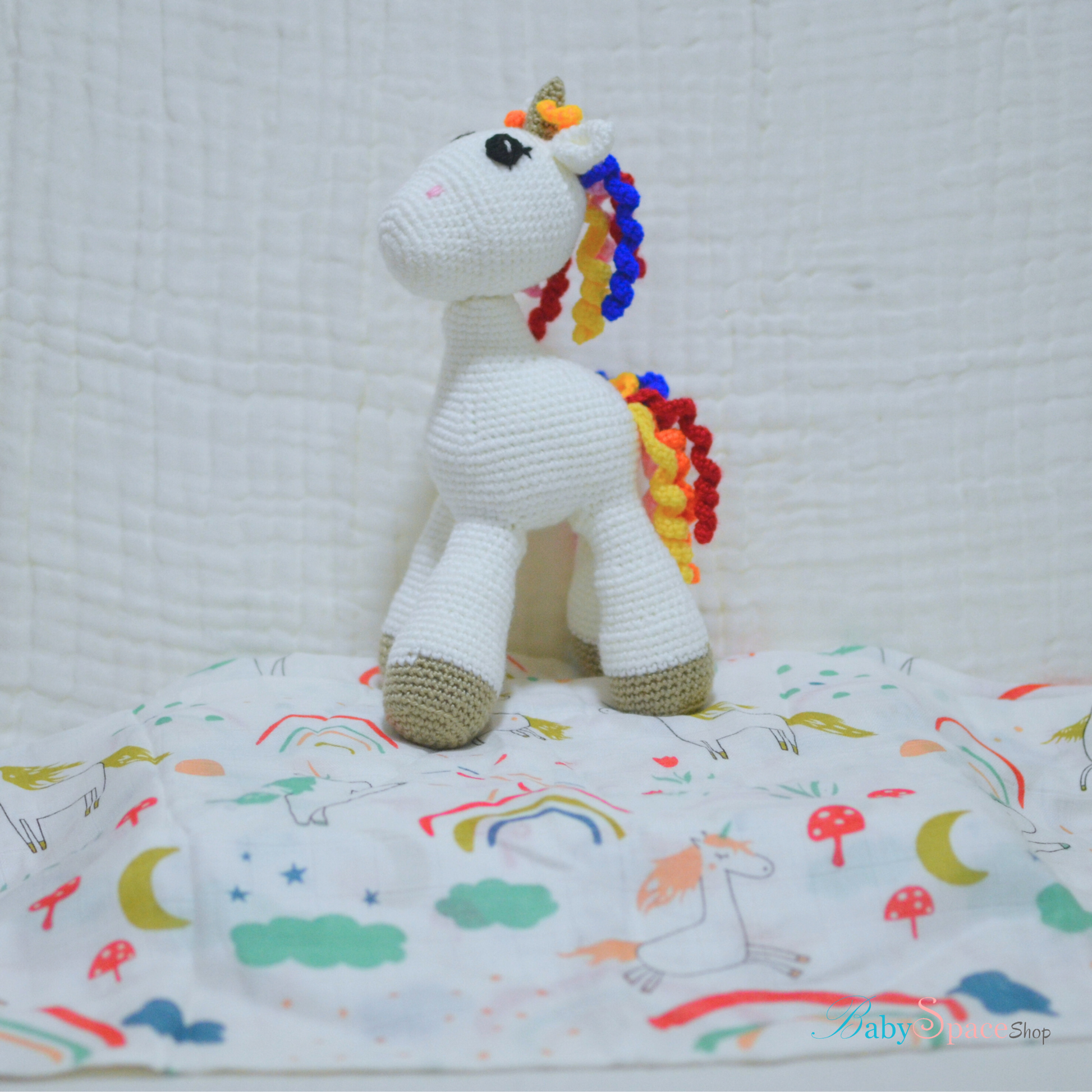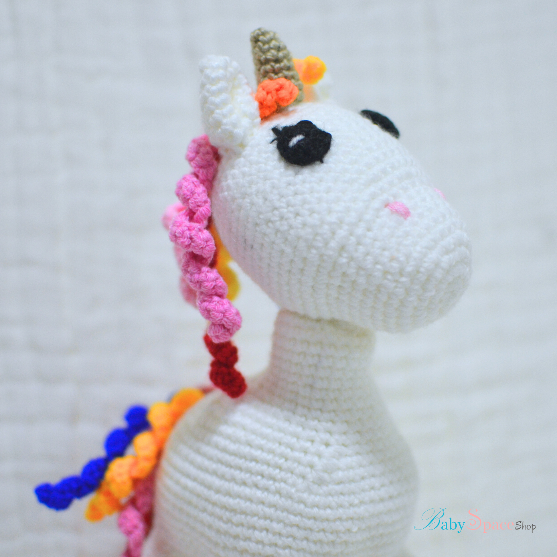 This handmade crochet rattle unicorn is crafted from soft cotton wool, ensuring a gentle touch for your baby. Its lightweight design makes it easy for little hands to grasp, while the rattle sound stimulates auditory development. An ideal gift that combines safety, comfort, and engaging play for infants.