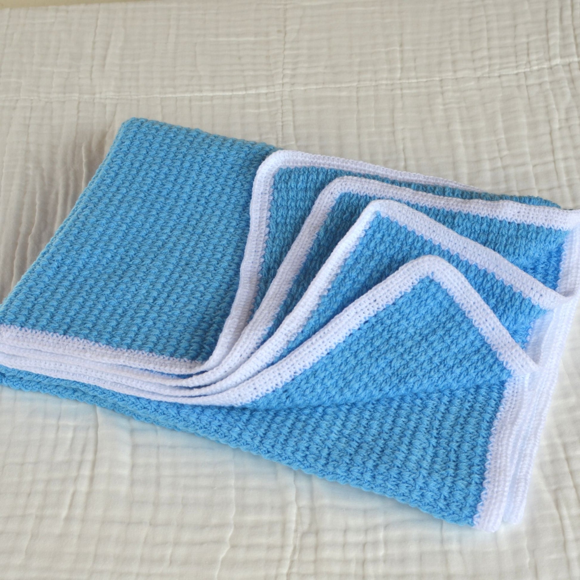 Handmade Crochet Toddler Blanket Blue - 150 x 100cm