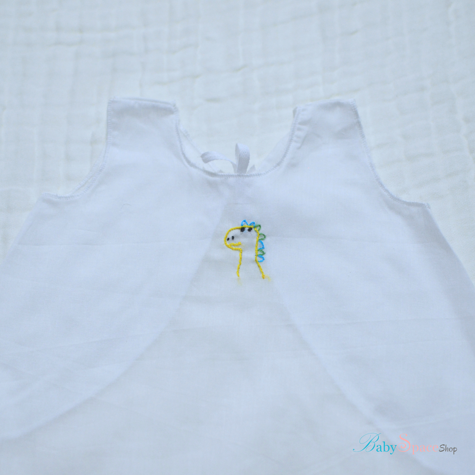 A special handmade collection of baby dresses with hand embroidered designs. Overlocked hem, delicate fabric