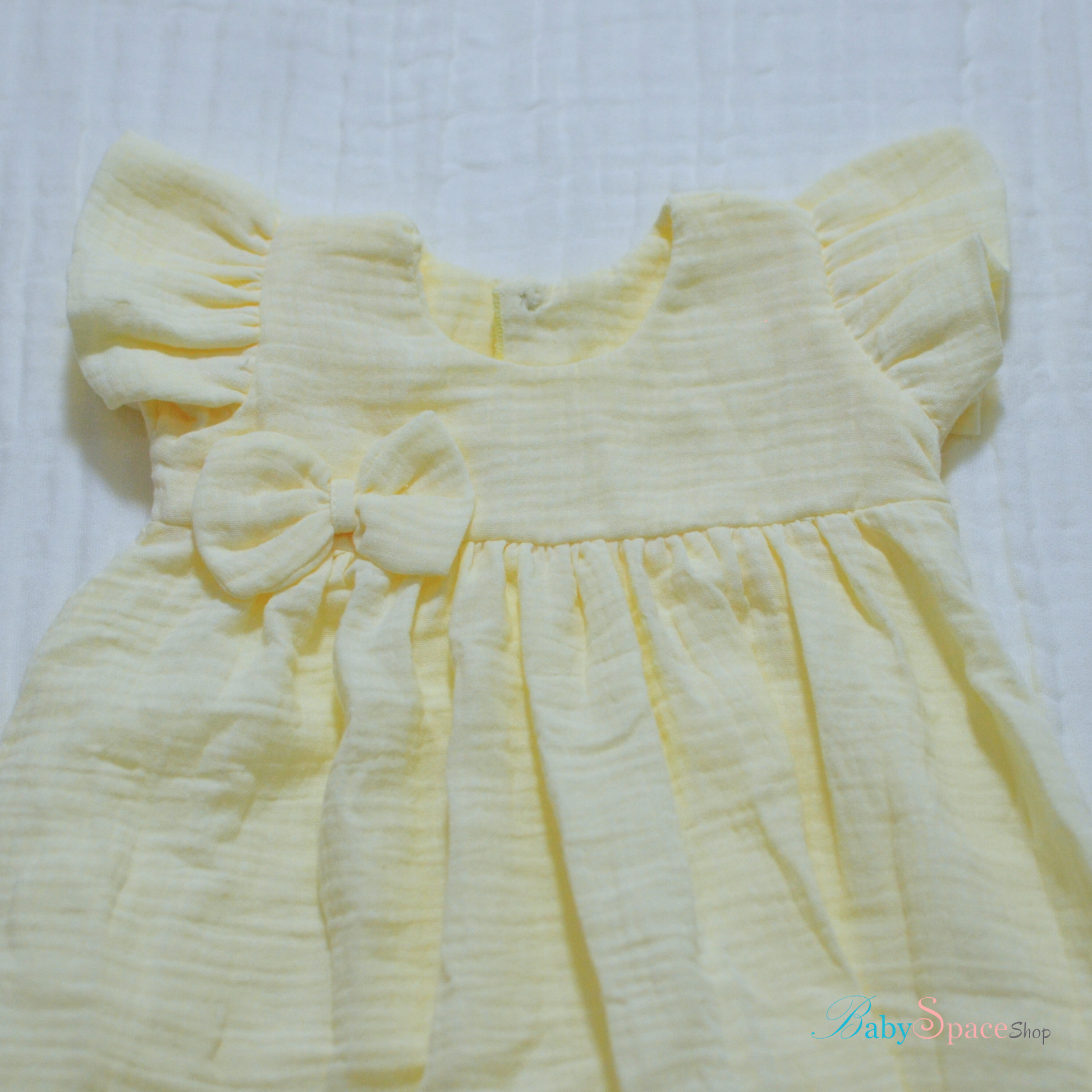 Handmade Muslin Printed Baby Dress - 3 to 6 months (Yellow)