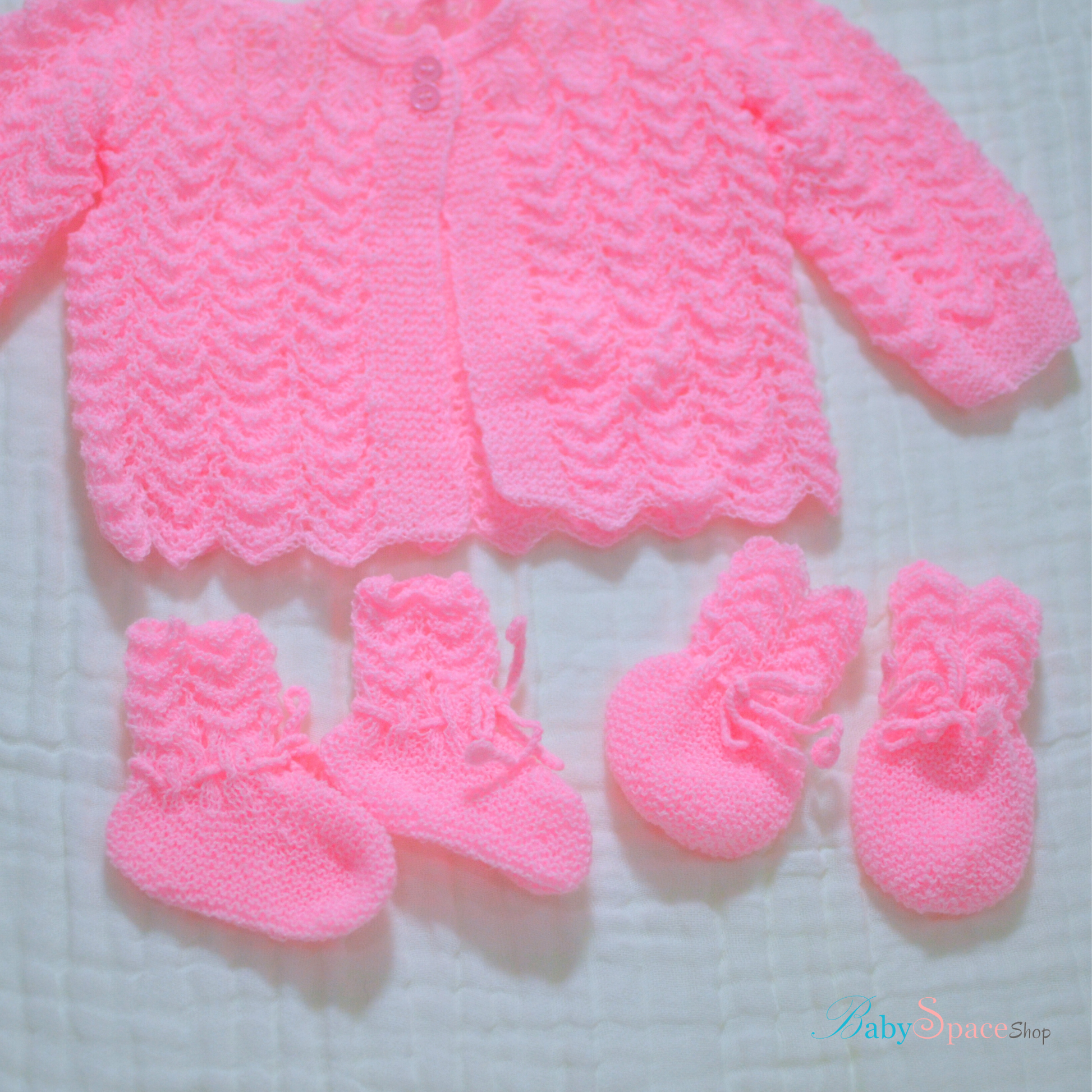 A great gift as accessories to your baby's coming home outfit. Includes overcoat, baby hat, mittens and booties.
