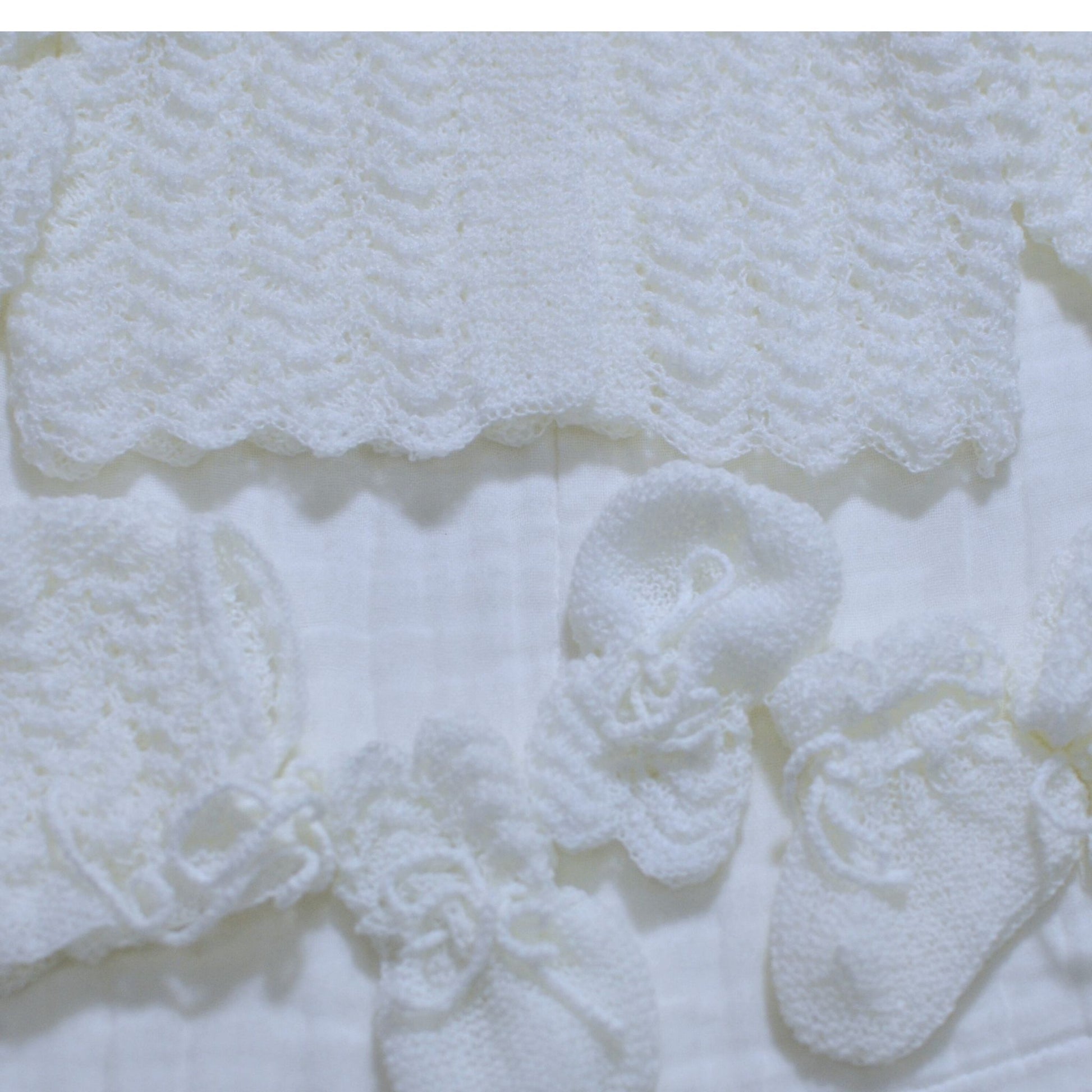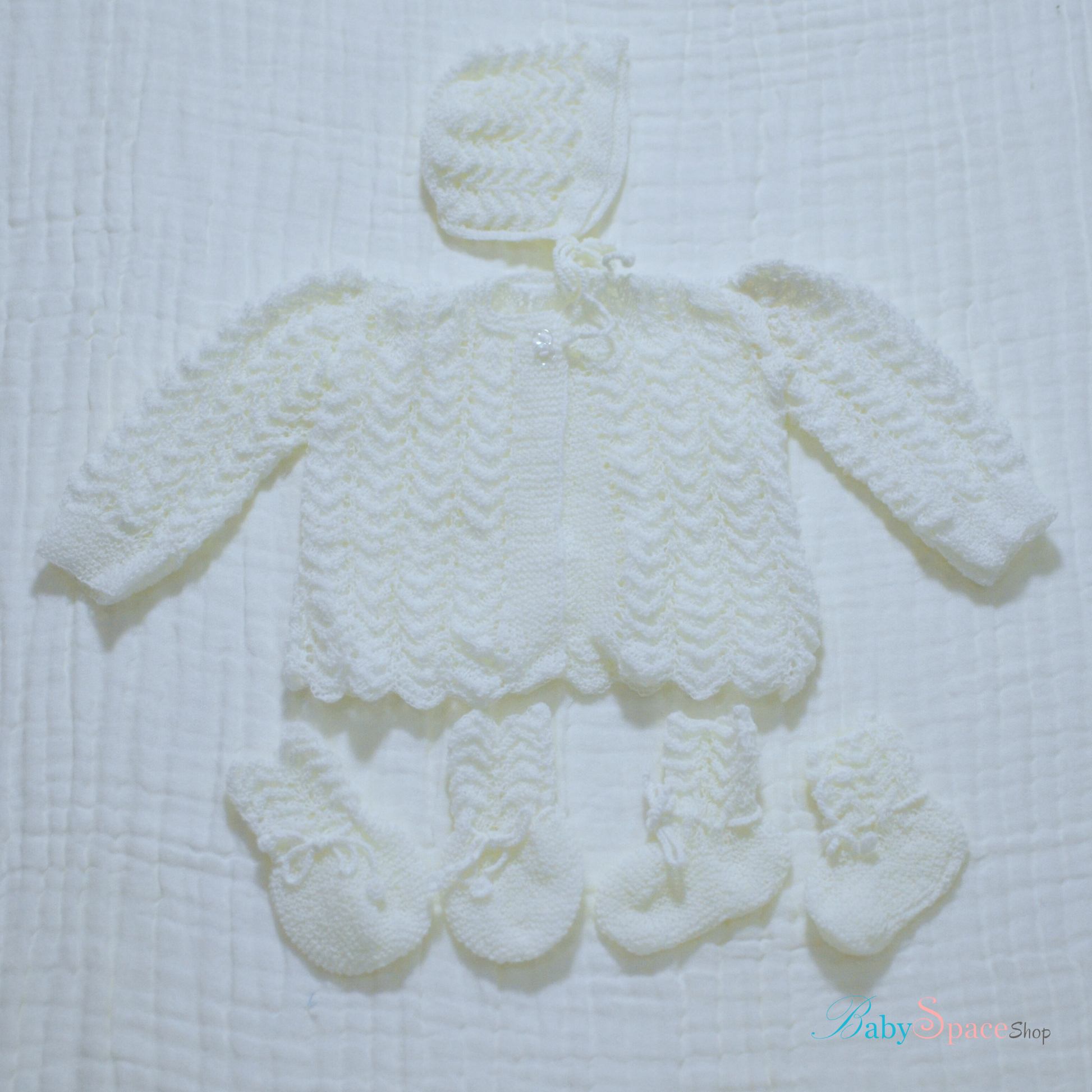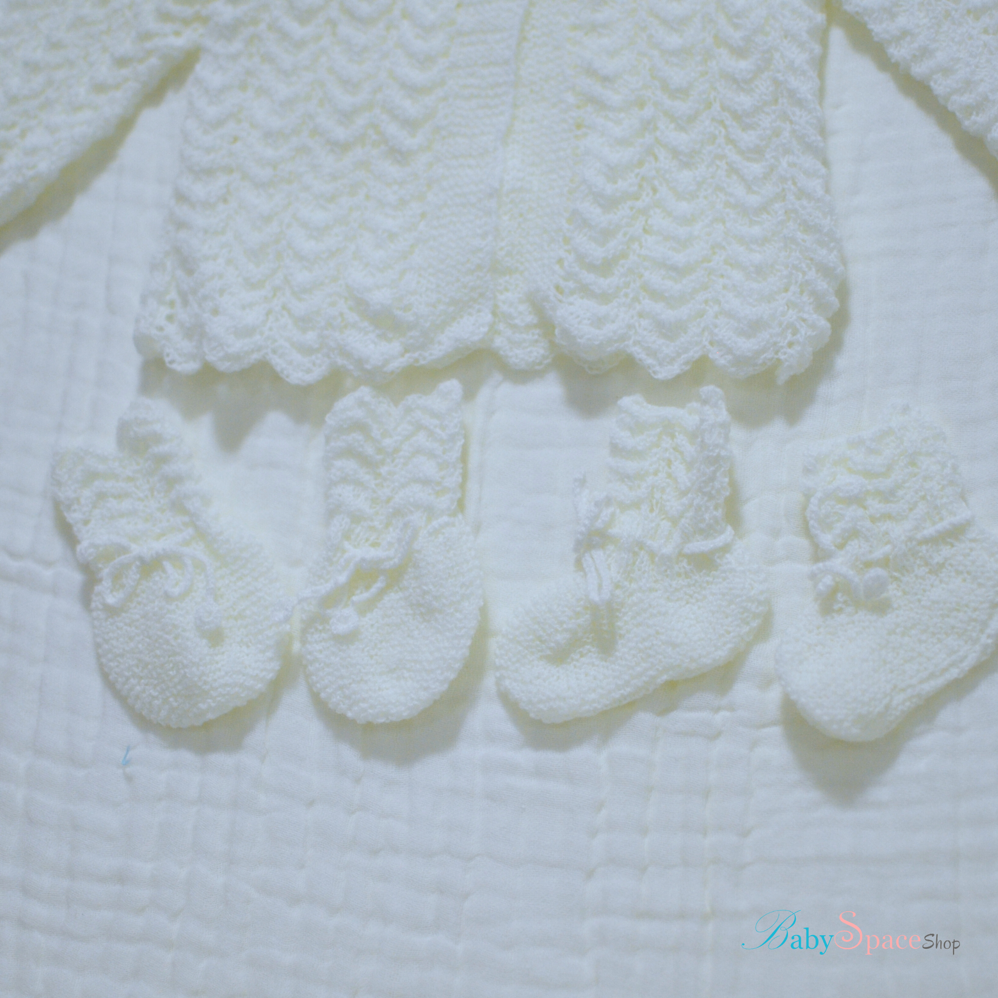 Knitted Baby Overcoat, Hat, Socks, Mittens Set White