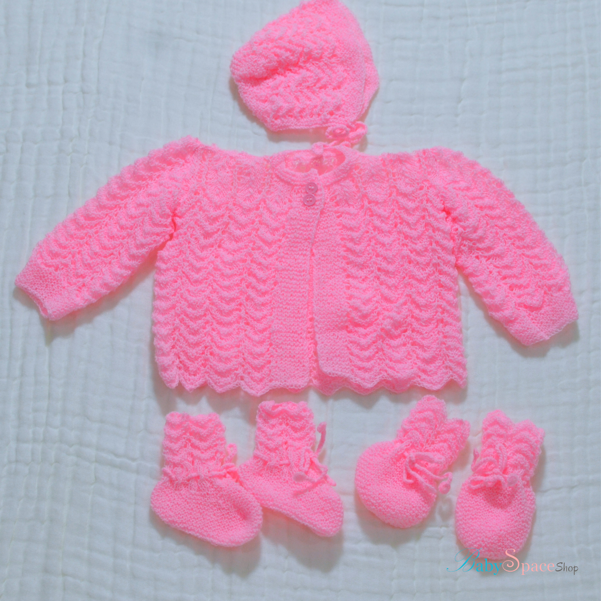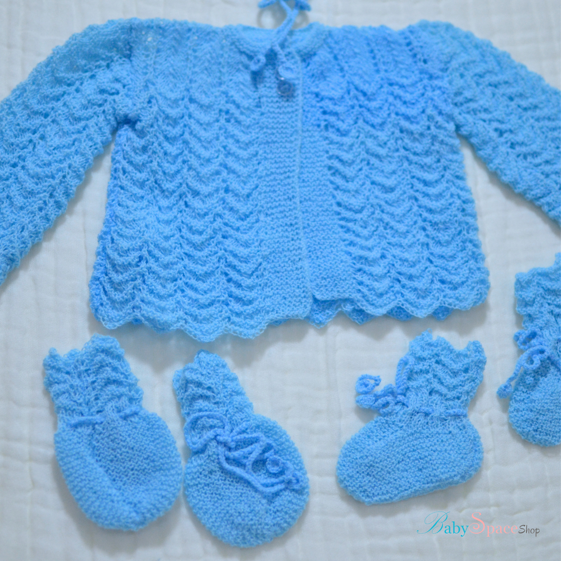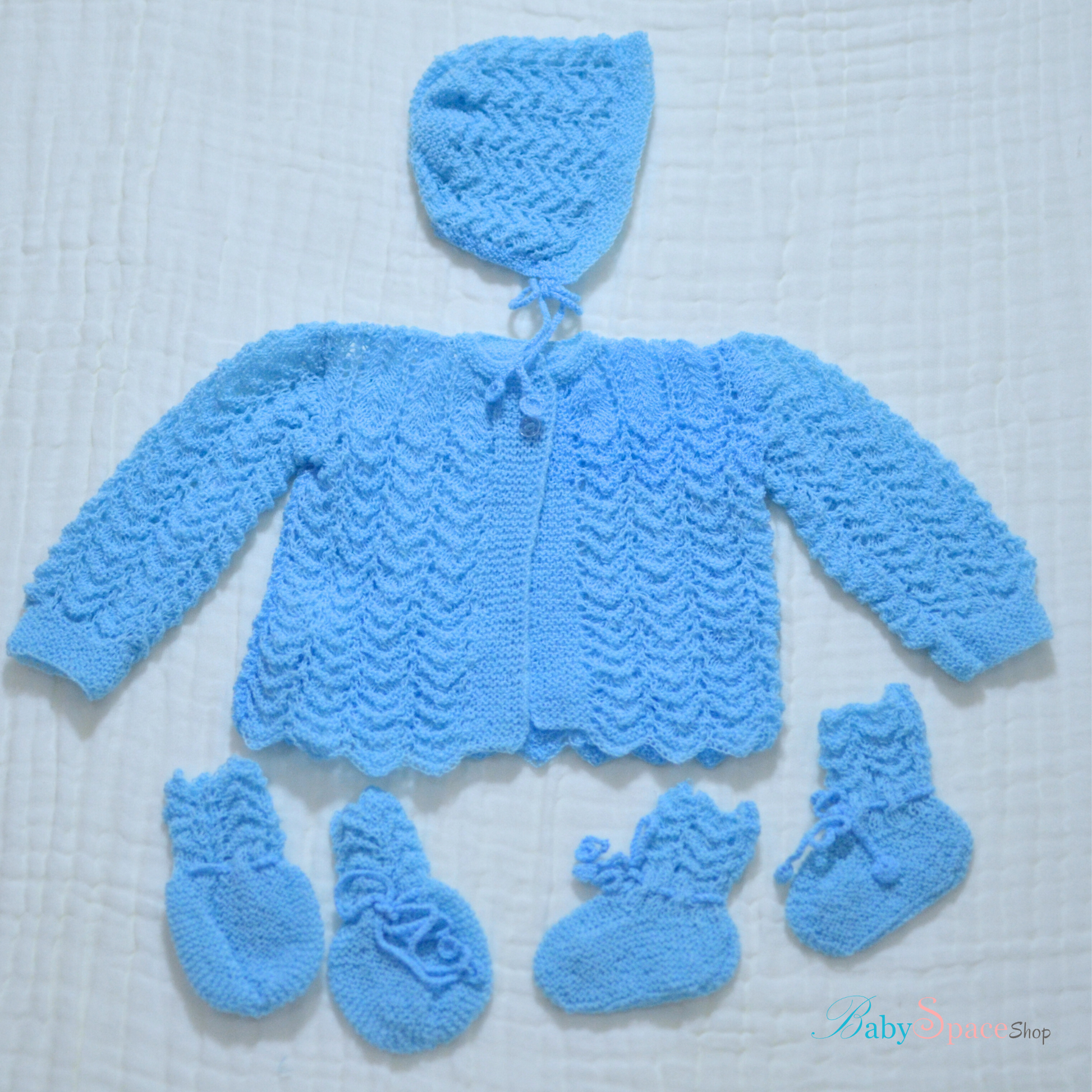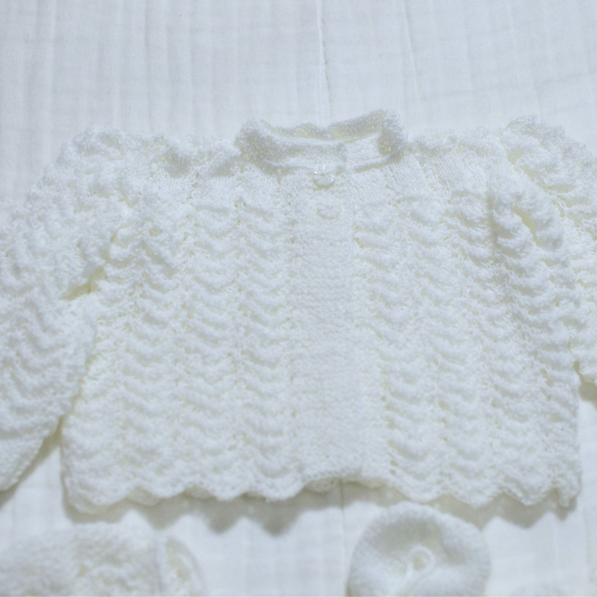 Knitted Baby Overcoat, Hat, Socks, Mittens Set White