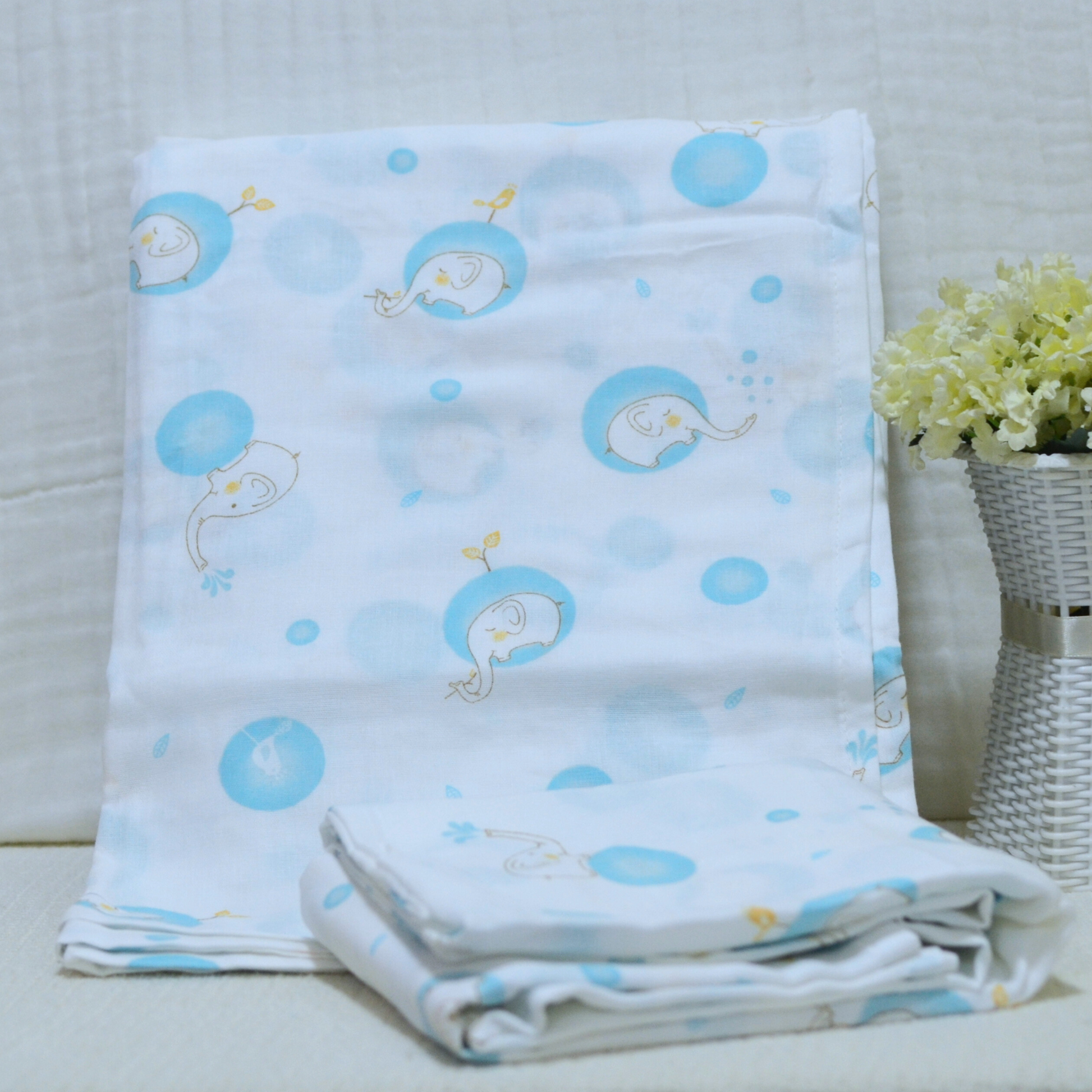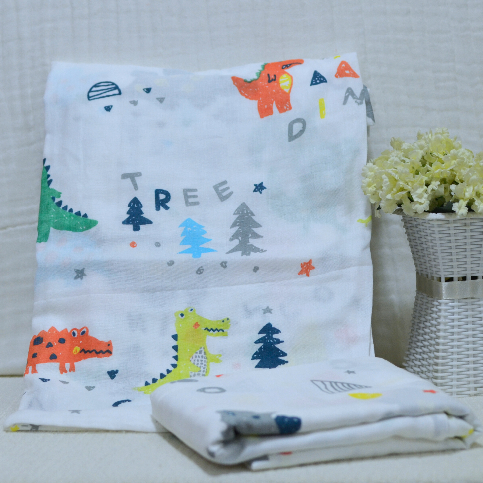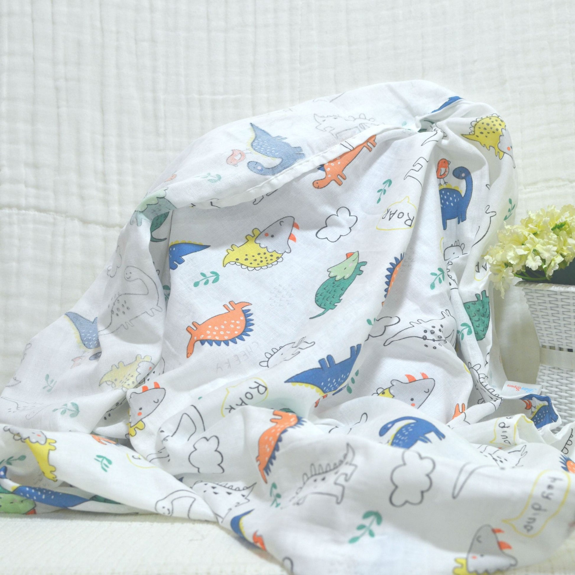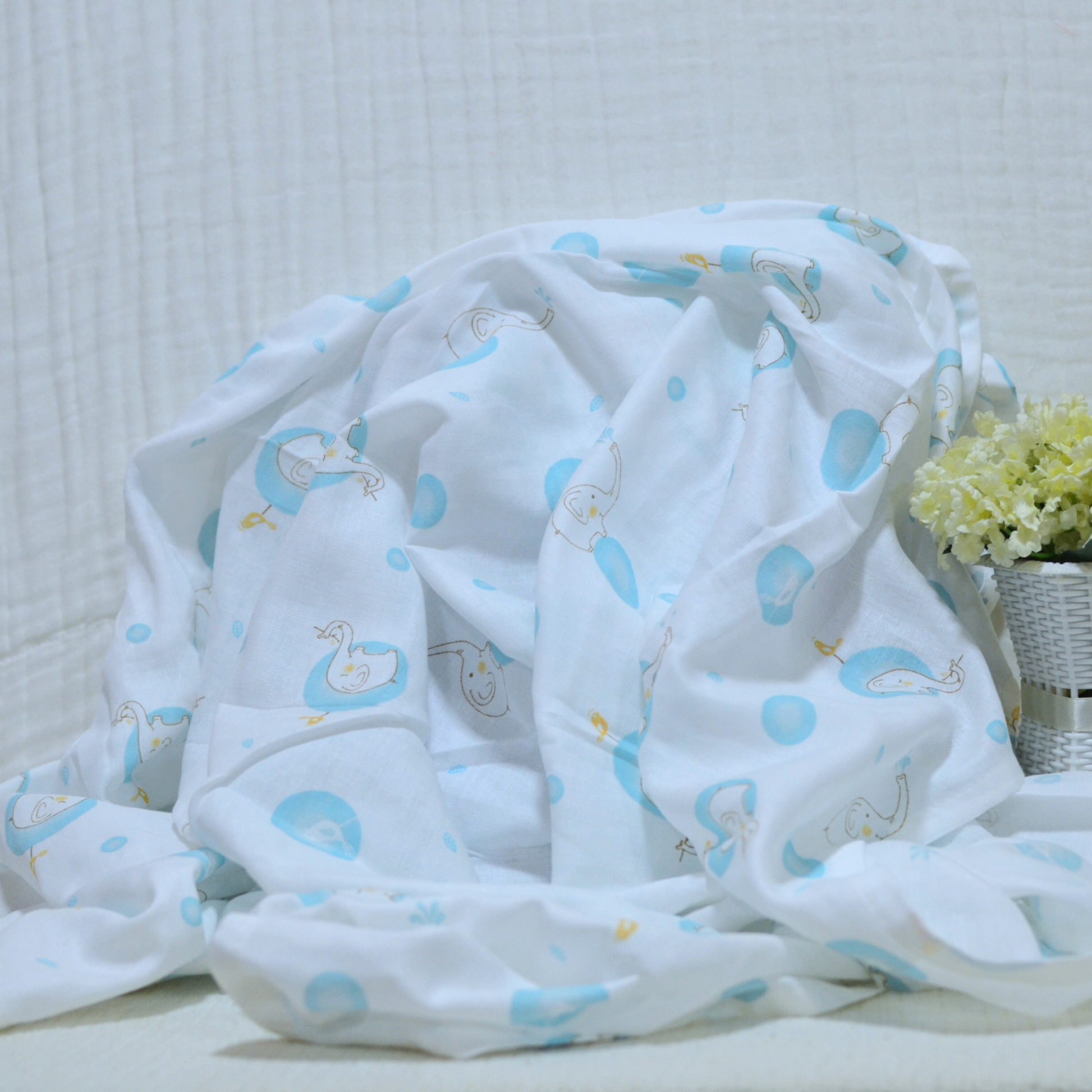 Breathable 100% cotton printed blanket baby muslin swaddle, suitable as a burp cloth, nursing cover, stroller cover, swaddle or as receiving blanket.