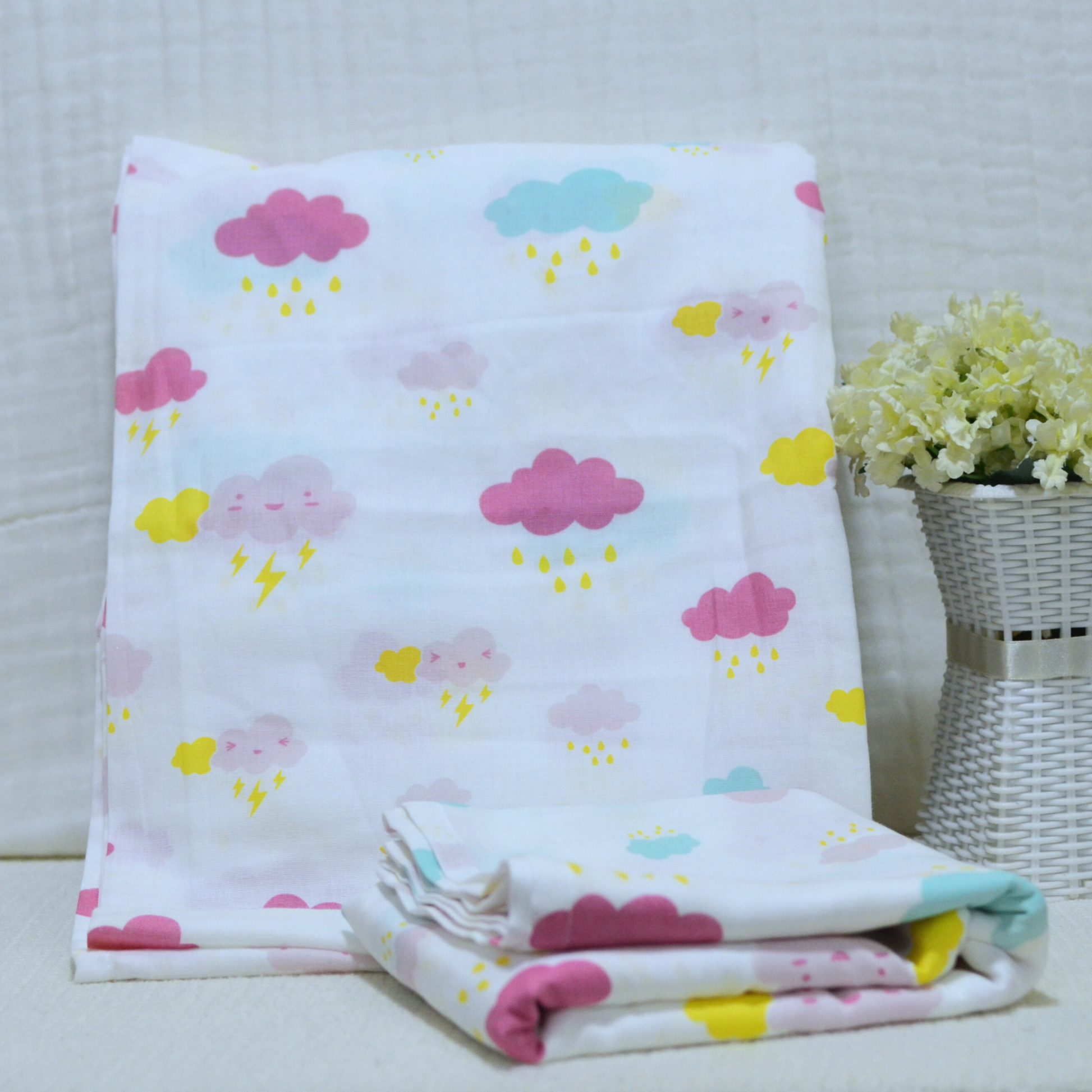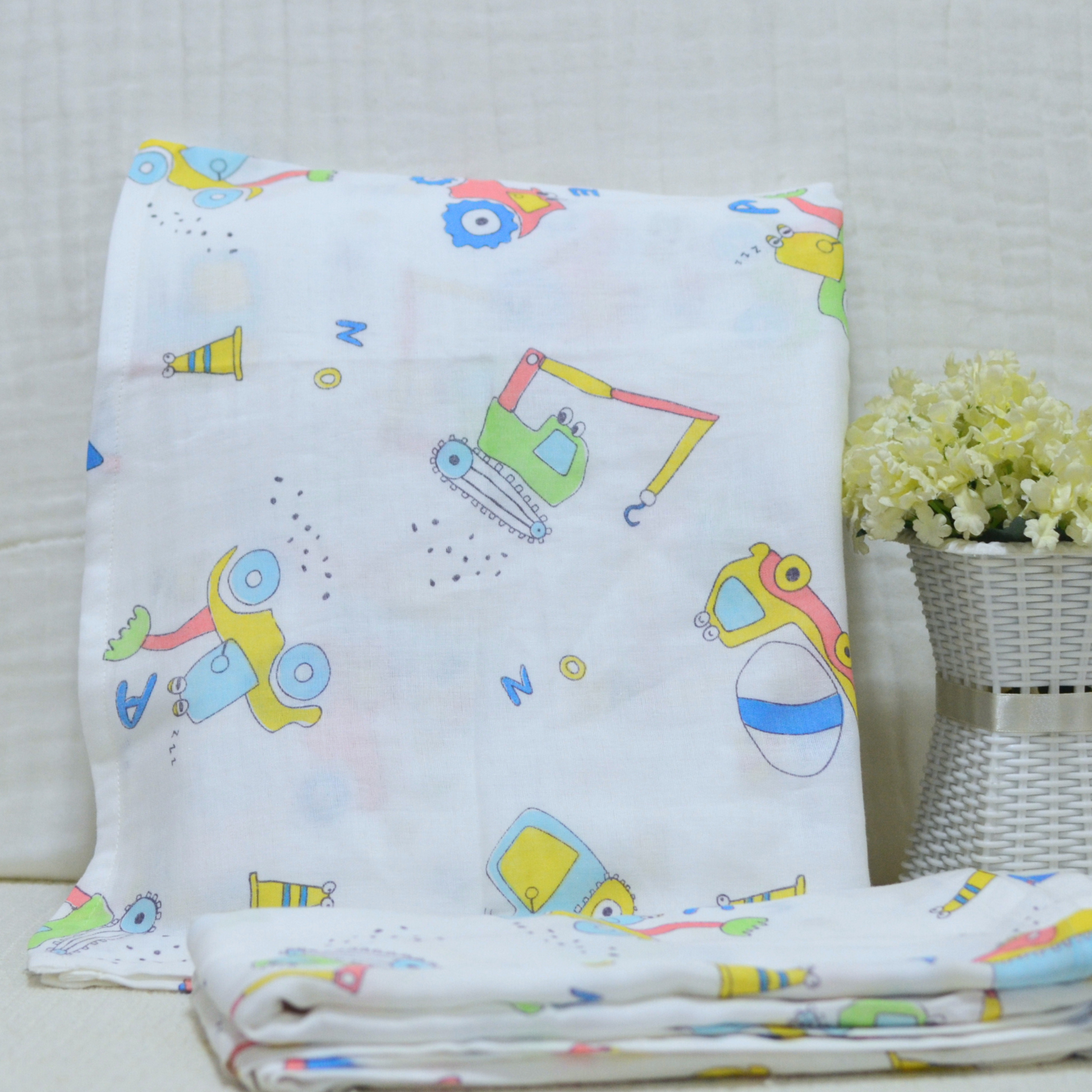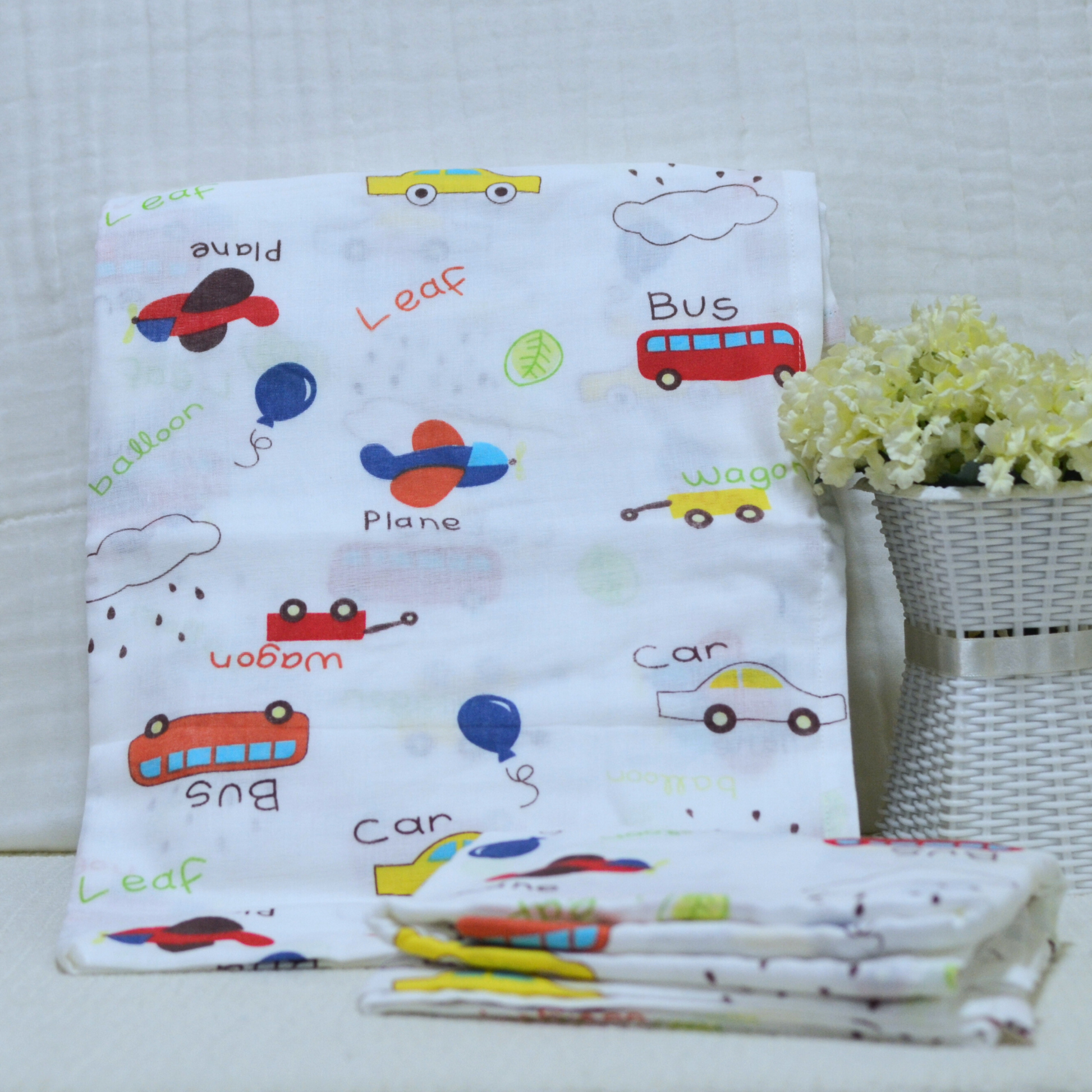 Breathable 100% cotton printed blanket baby muslin swaddle, suitable as a burp cloth, nursing cover, stroller cover, swaddle or as receiving blanket.