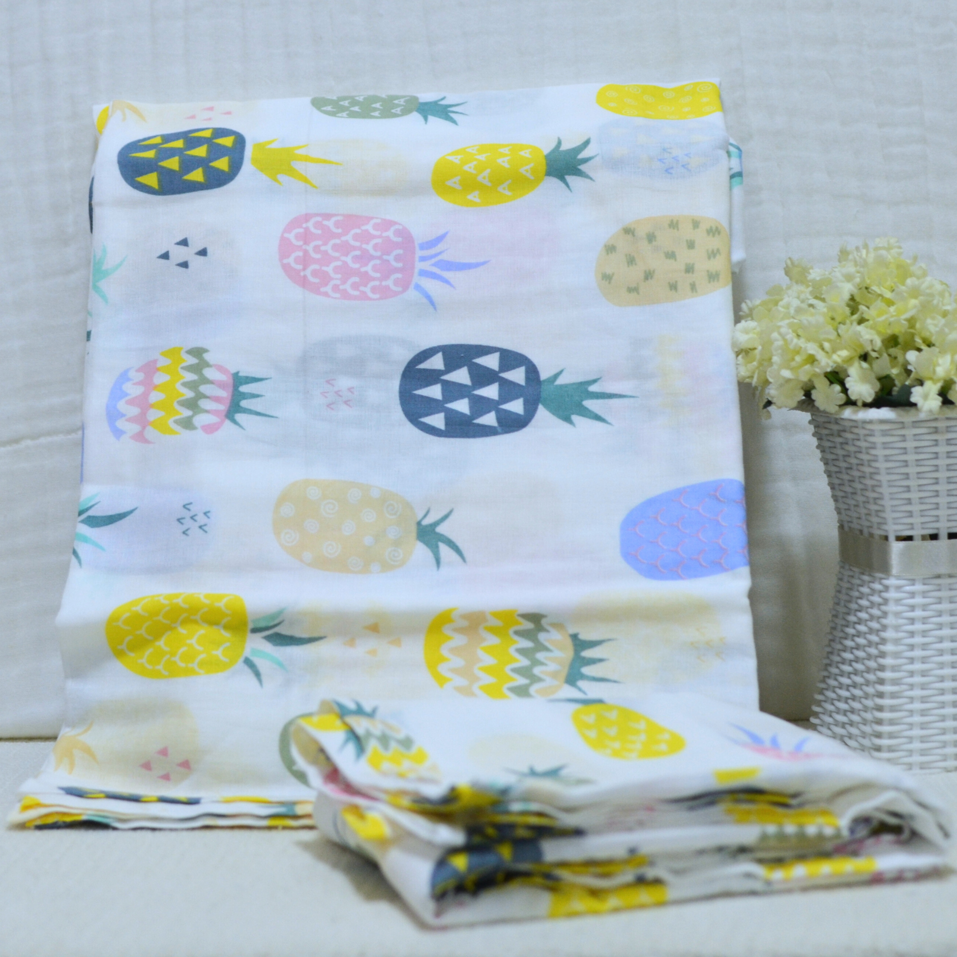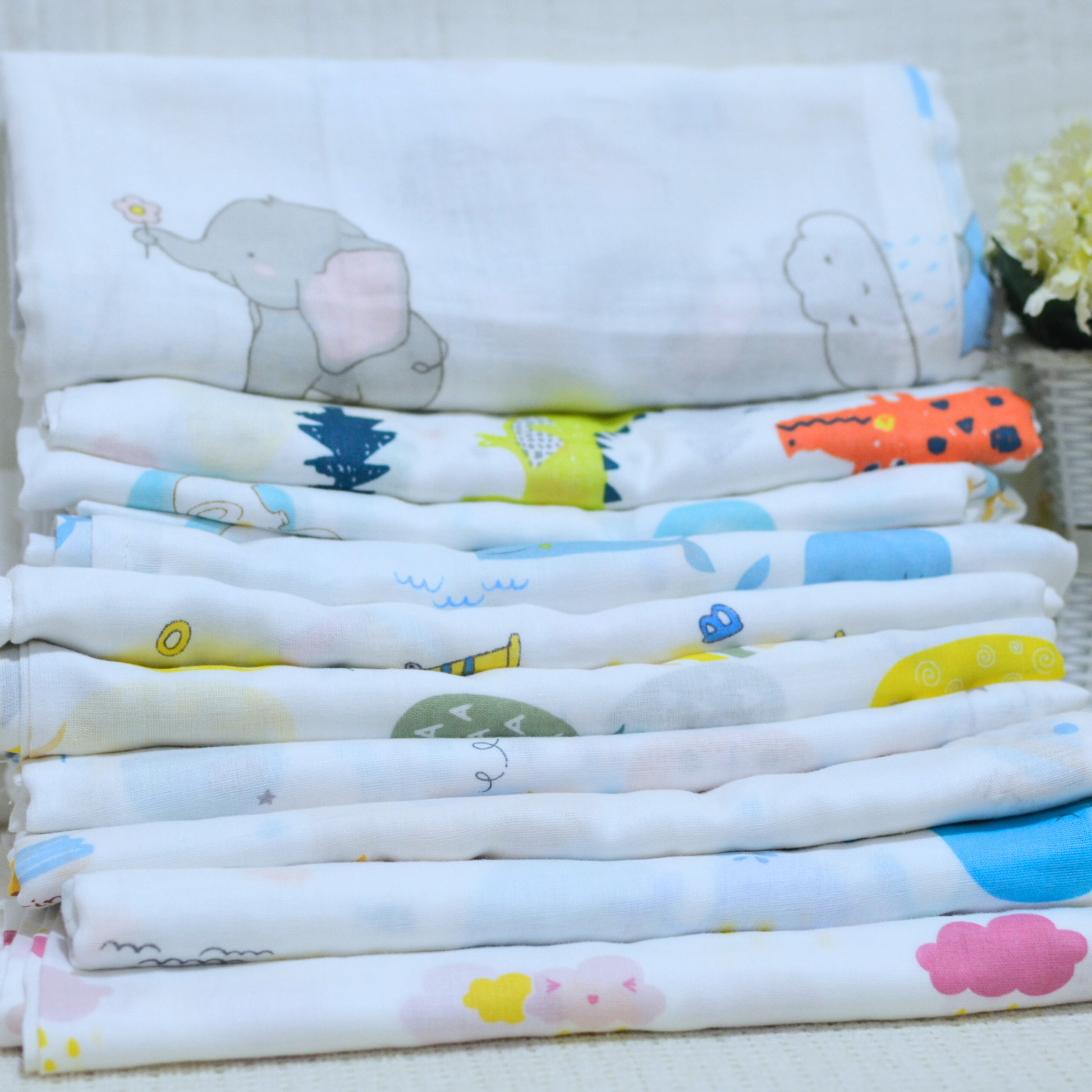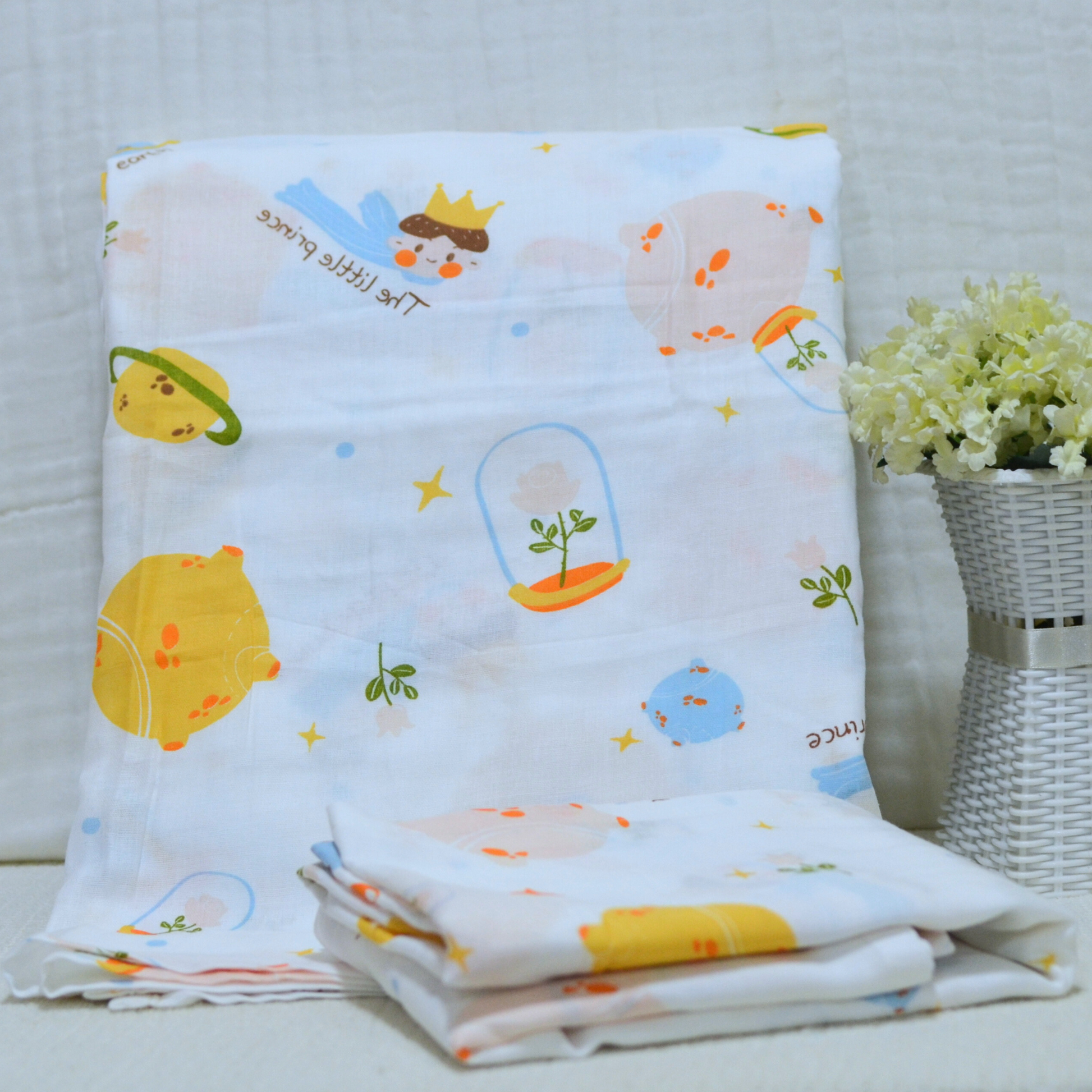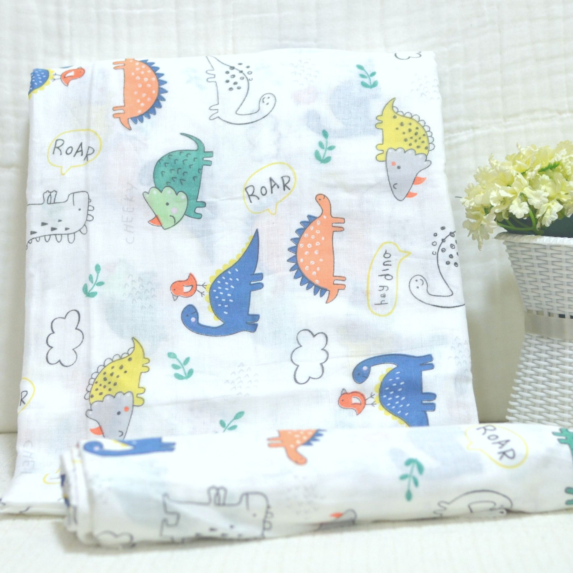 Breathable 100% cotton printed blanket baby muslin swaddle, suitable as a burp cloth, nursing cover, stroller cover, swaddle or as receiving blanket.