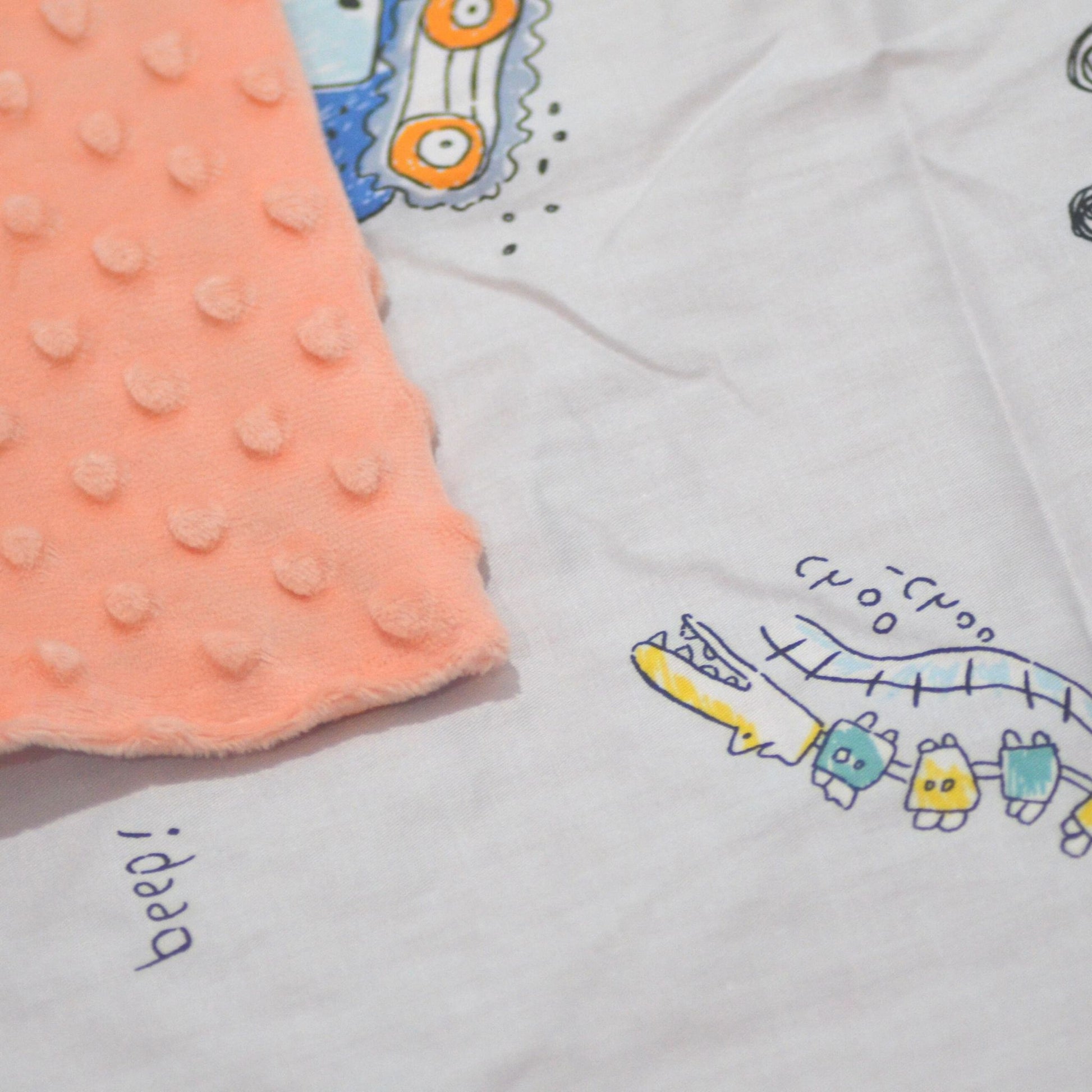 This baby blanket is made to keep baby warm and cosy. With one side plain cotton weave and other with polyester fleece fabric which is very soft.