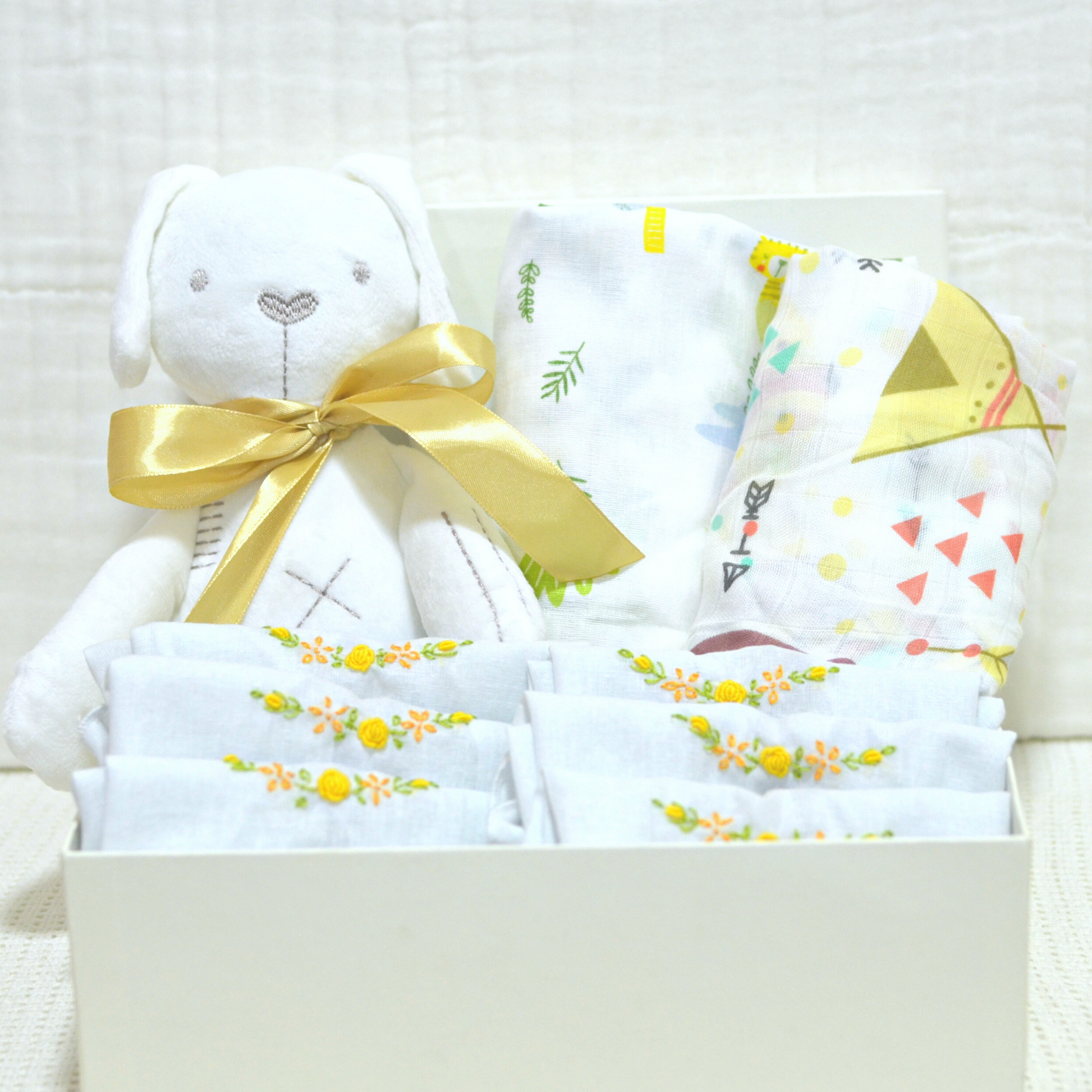A simple elegant gift for a new baby and the family! Gift comes in a gift box with ribbon on top. Items in the box include;